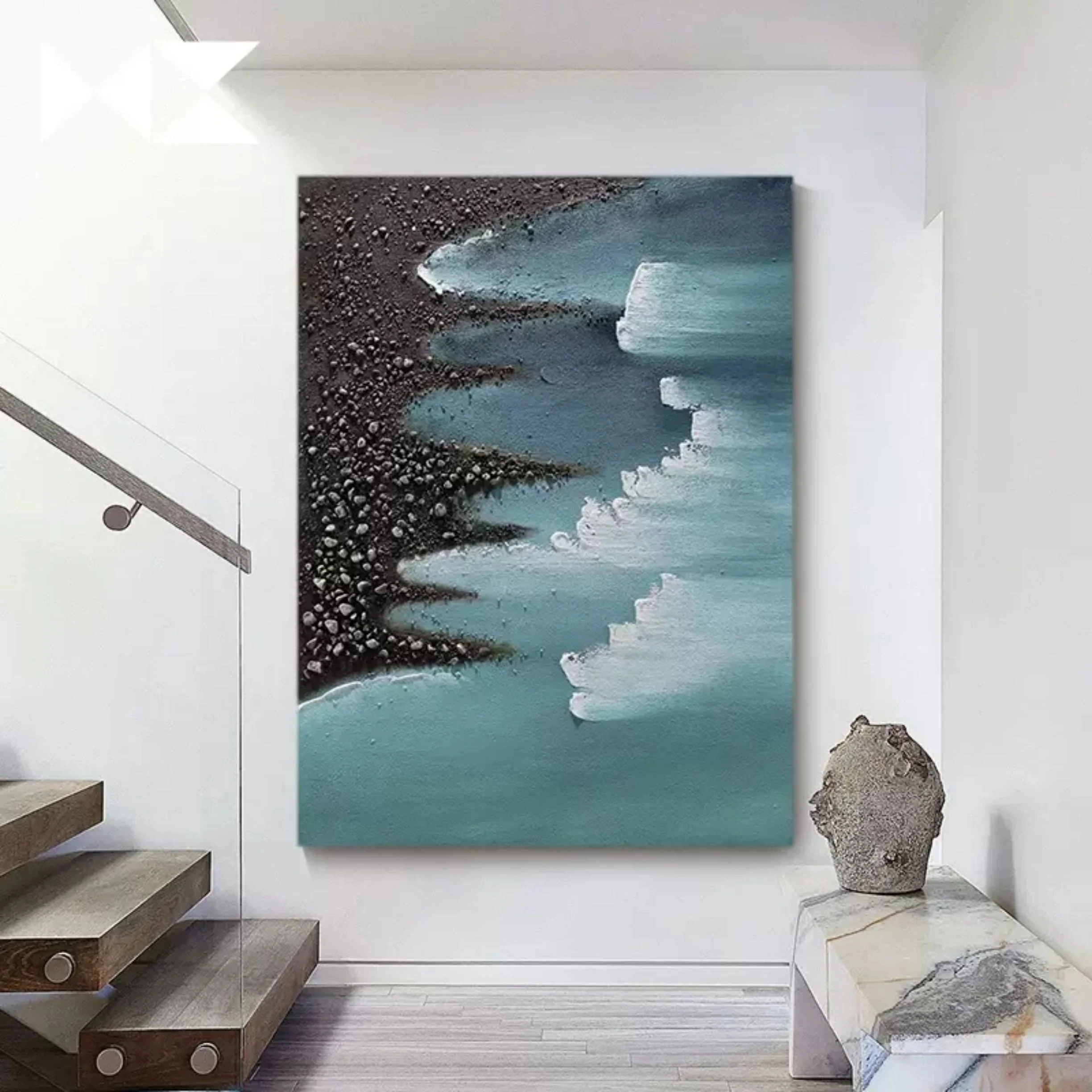Plaster Coastal Textured Seascape Abstract Painting